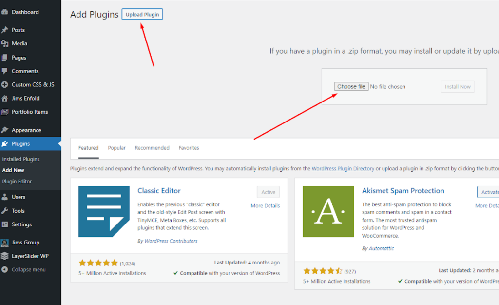 - Choose the ZIP File: Click the “Choose File” button and select the ZIP file you downloaded earlier for the Jim’s WPCB plugin.