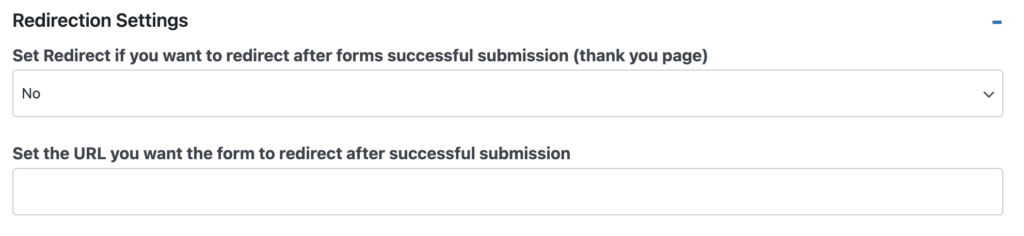 Choose whether to set a redirect after the form’s successful submission (thank you page):