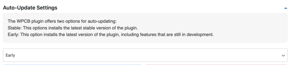 - Early: This option installs the latest version of the plugin, including features that are still in development.
