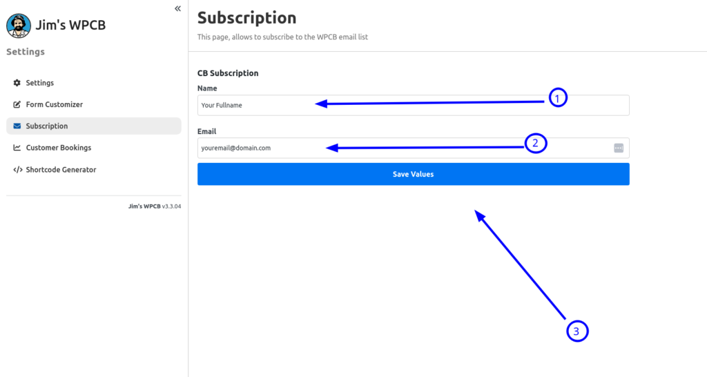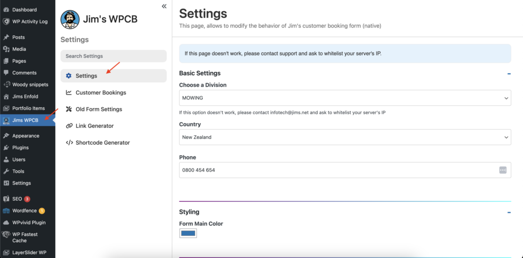 To access the form customization settigns for the Jim’s WPCB plugin: