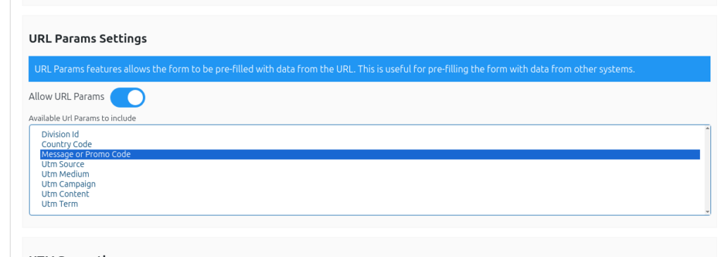 - UTM Properties tracking.You can prepopulate UTM properties using the WPCB shortcode. These properties are useful for tracking leads through FMS, as they get recorded into the FMS lead source string. You can populate them with any alphanumeric value. ⚠️ Please note: Special characters such as `!@#$%^&*()_+={}[]/|<>?;’”:~“ are not allowed and will be rejected.
