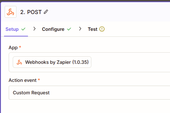 2.4: The webhook should be configured to have an “action event” of “Custom Request”